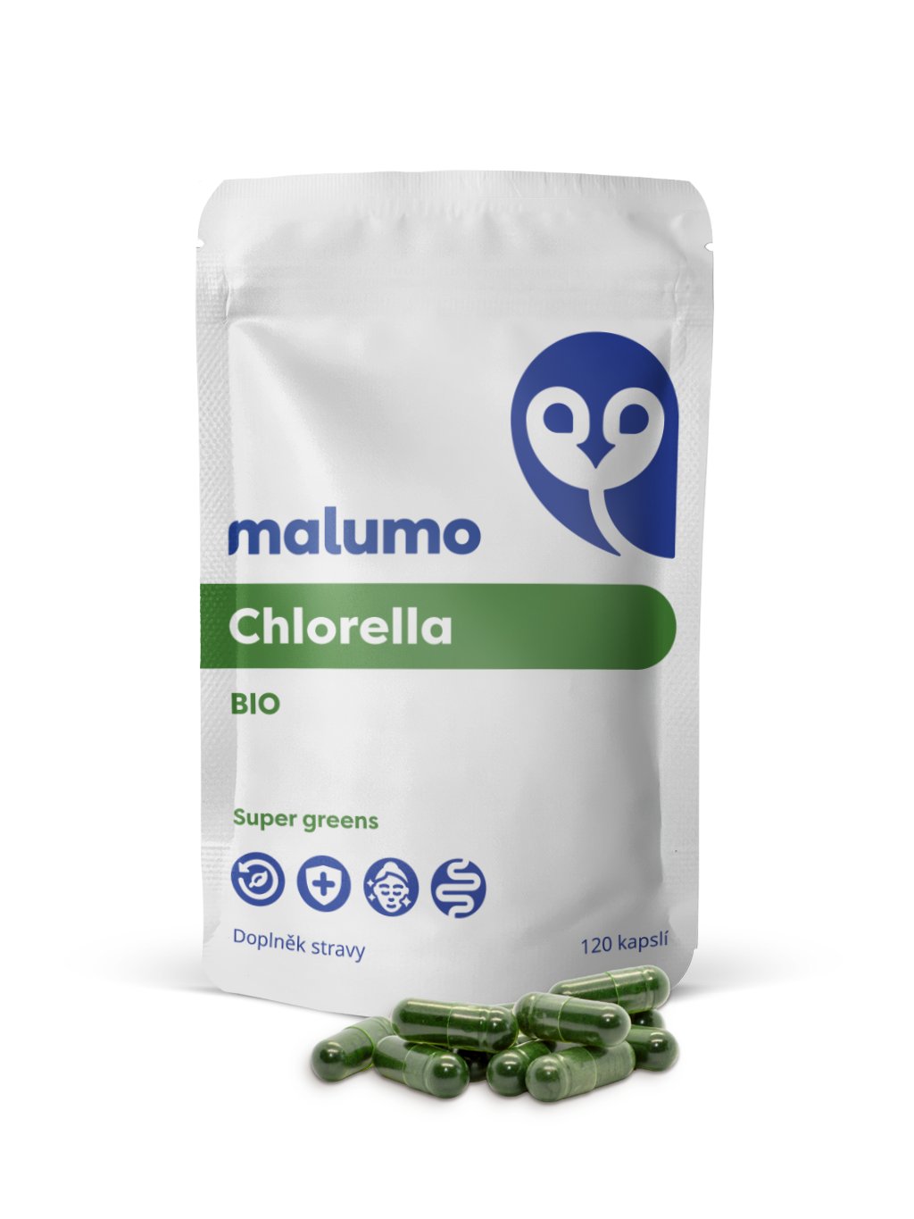 Chlorella je jednobuněčná sladkovodní řasa s vysokým obsahem chlorofylu. Její bohatý nutriční profil dodává tělu potřebné živiny a vitalitu. Dále se vyhledává pro podporu přirozených očistných procesů, denní odolnosti a zdraví střev. [1, 3, 5, 7]