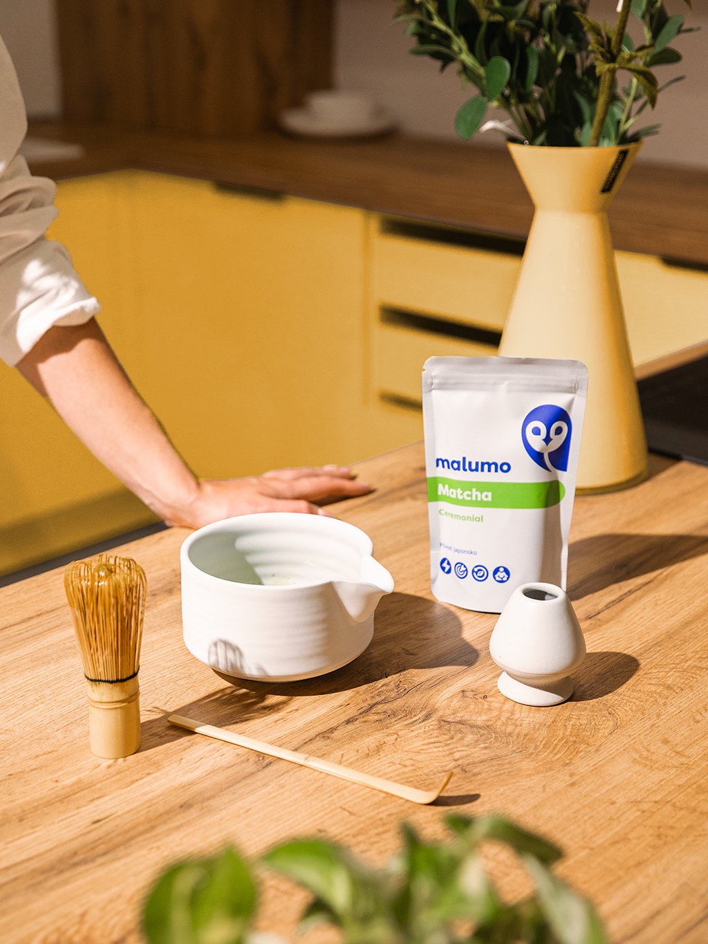 - Set je ideální pomocník pro domácí přípravu matchy.